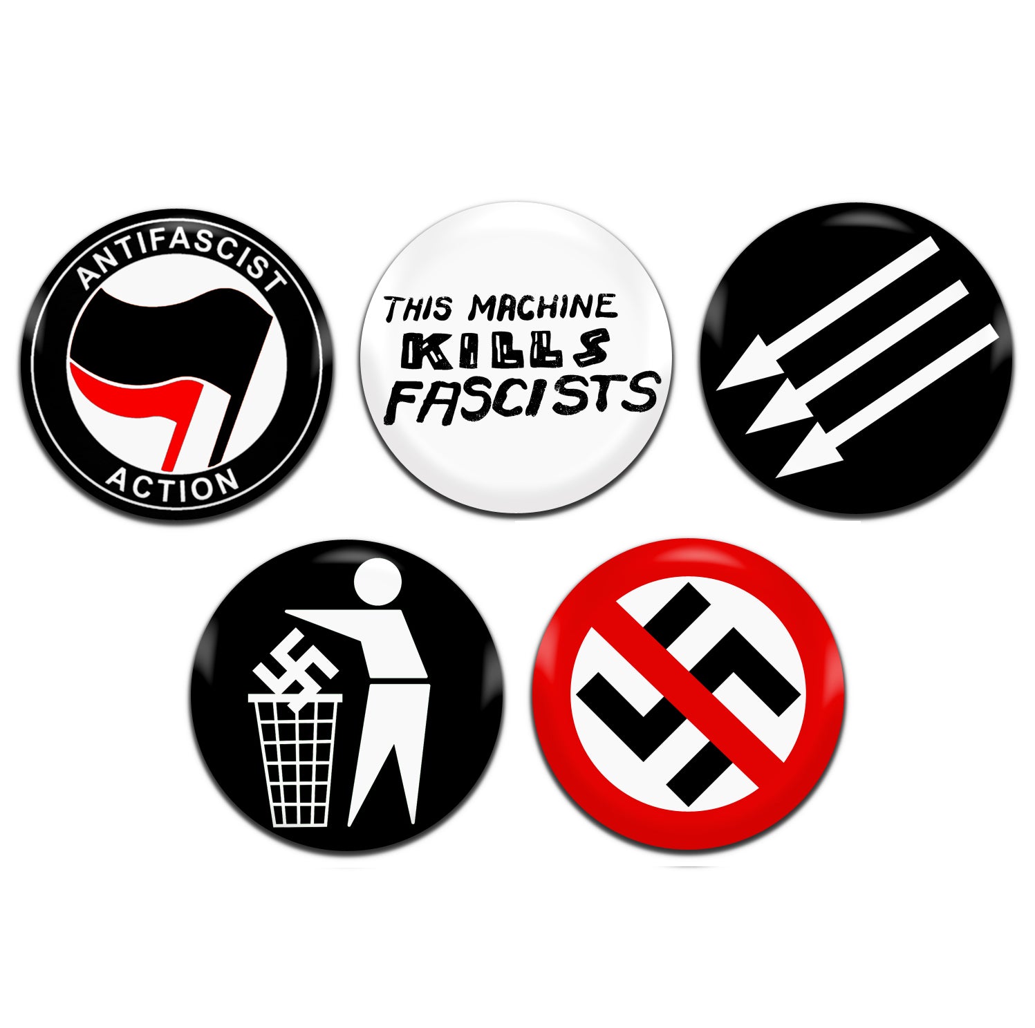 Anti-Facist Anti-Nazi 25mm / 1 Inch D-Pin Button Badges (5x Set)