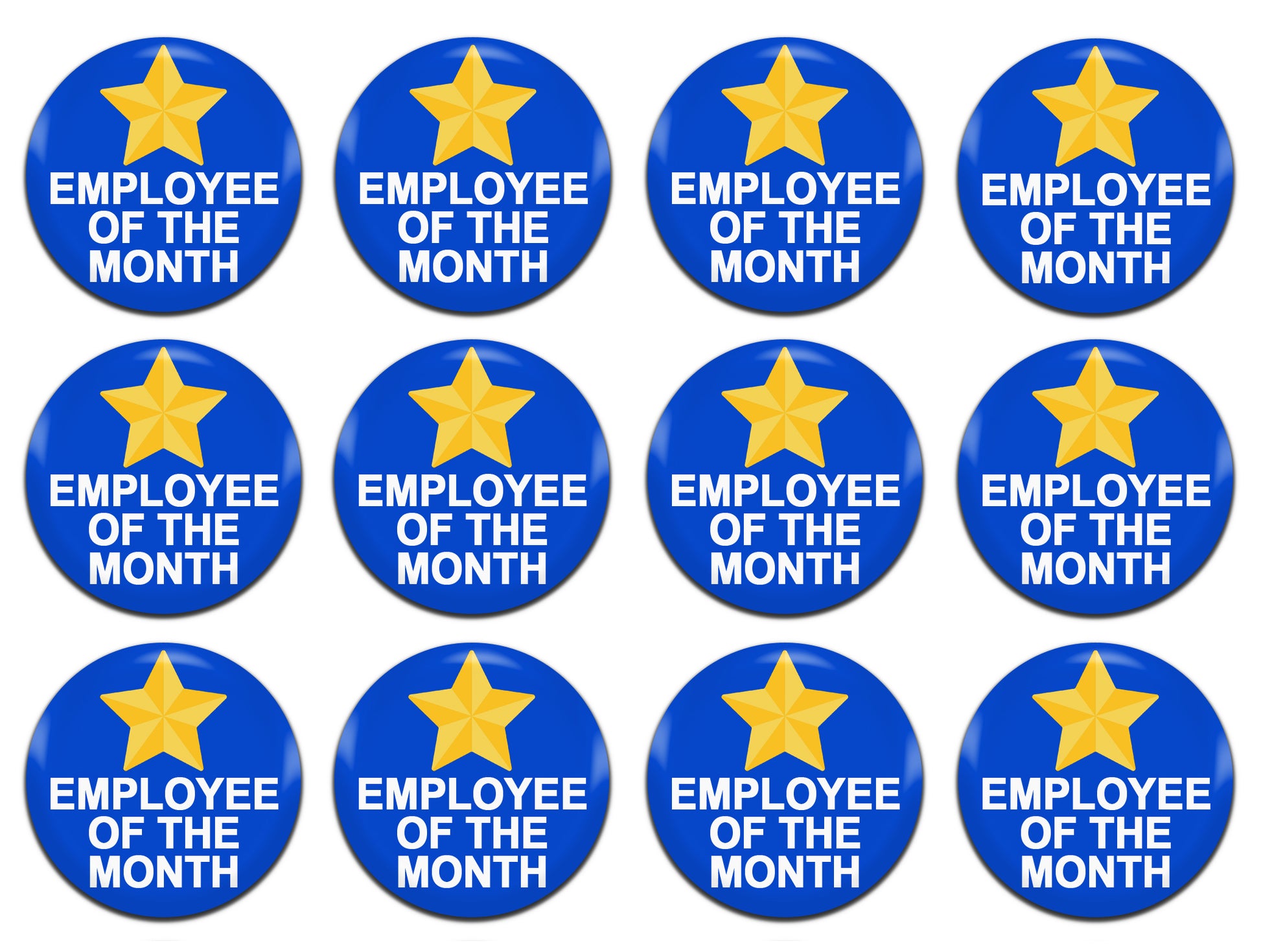 Employee Of The Month Blue 25mm / 1 Inch D-Pin Button Badges (12x Set)