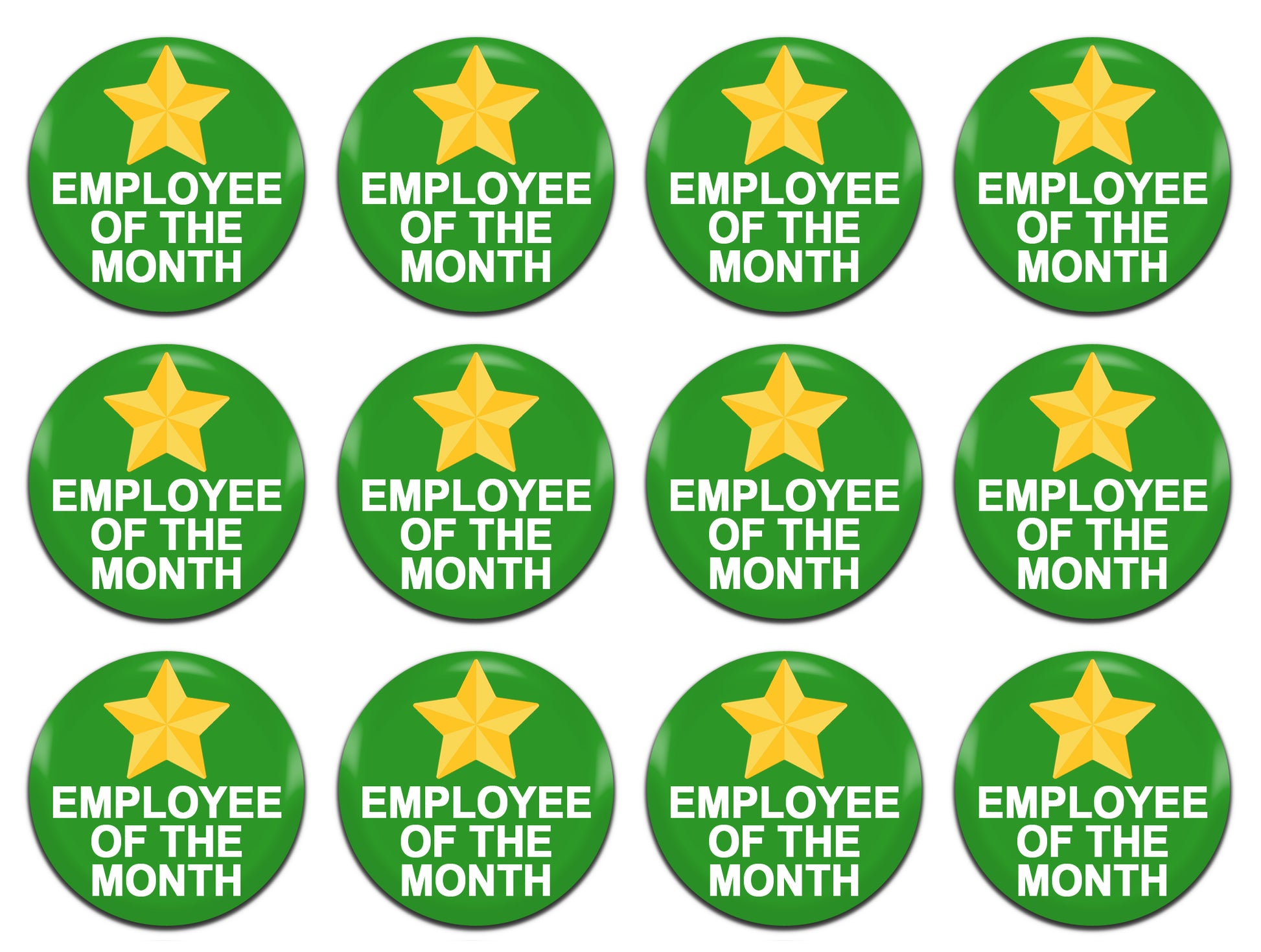 Employee Of The Month Green 25mm / 1 Inch D-Pin Button Badges (12x Set)