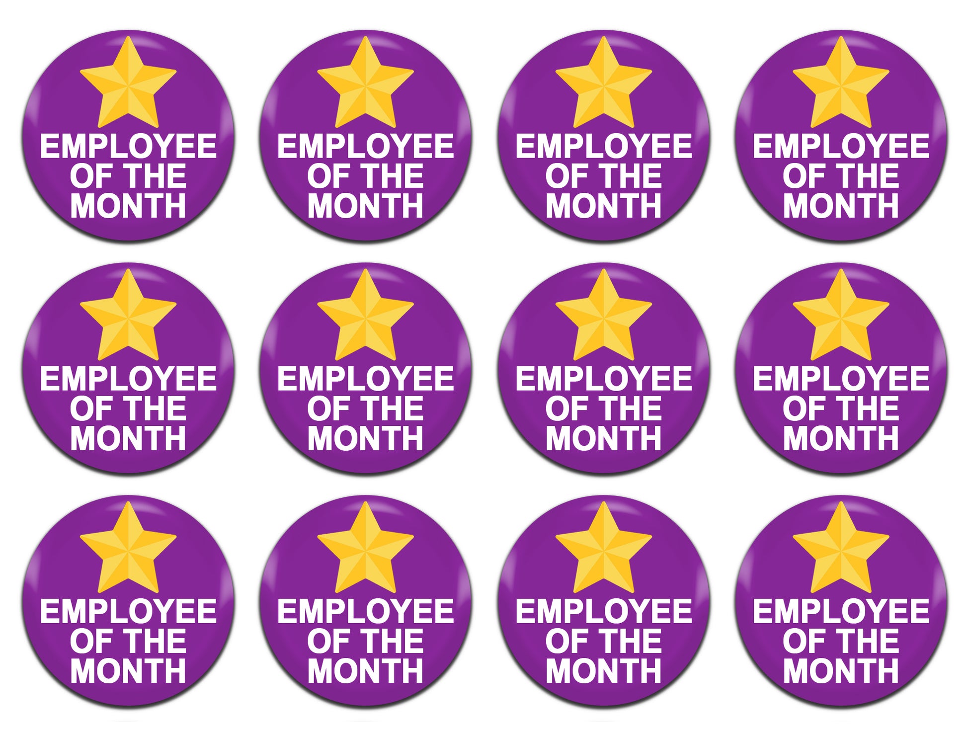 Employee Of The Month Purple 25mm / 1 Inch D-Pin Button Badges (12x Set)