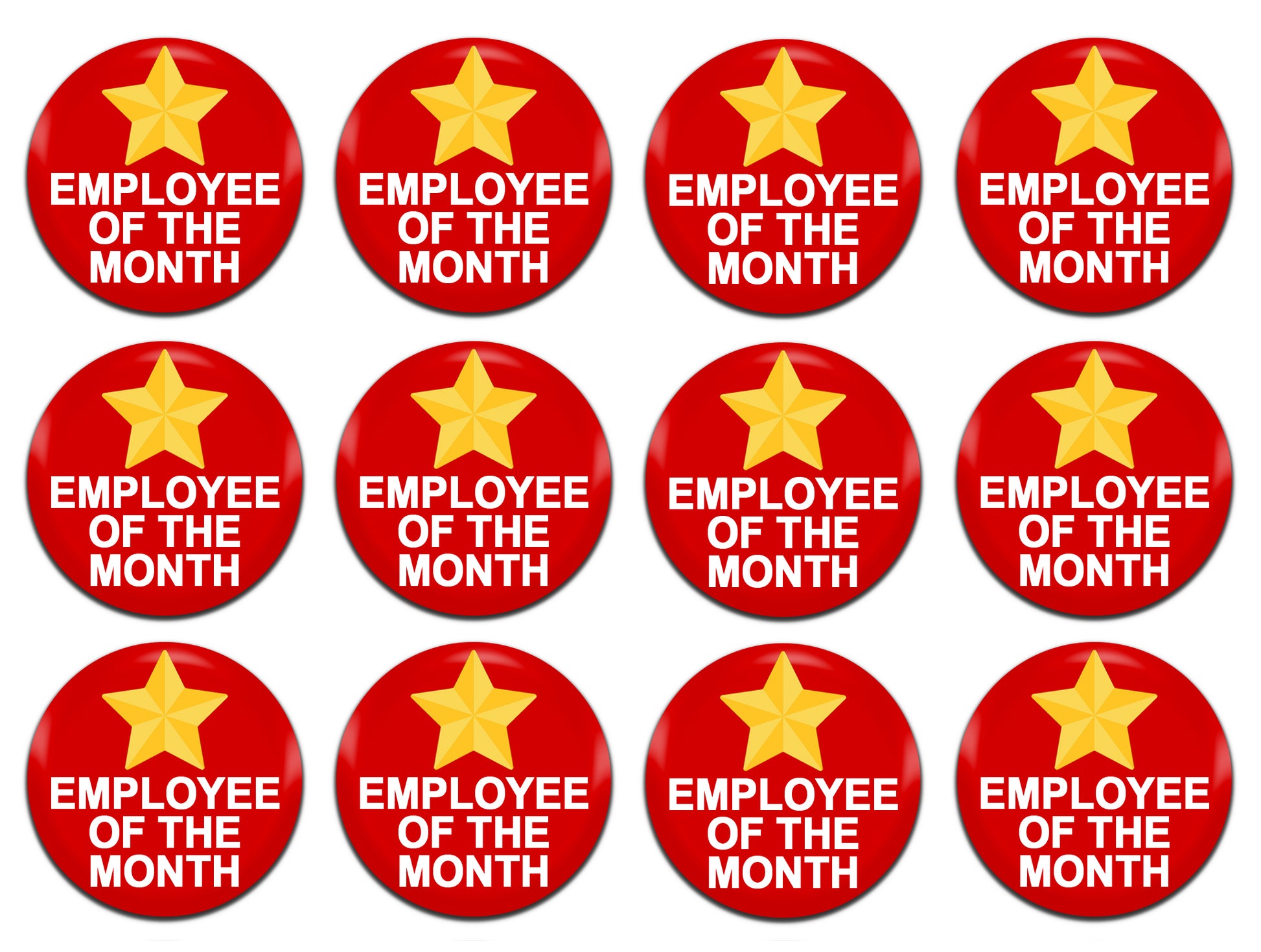 Employee Of The Month Red 25mm / 1 Inch D-Pin Button Badges (12x Set)