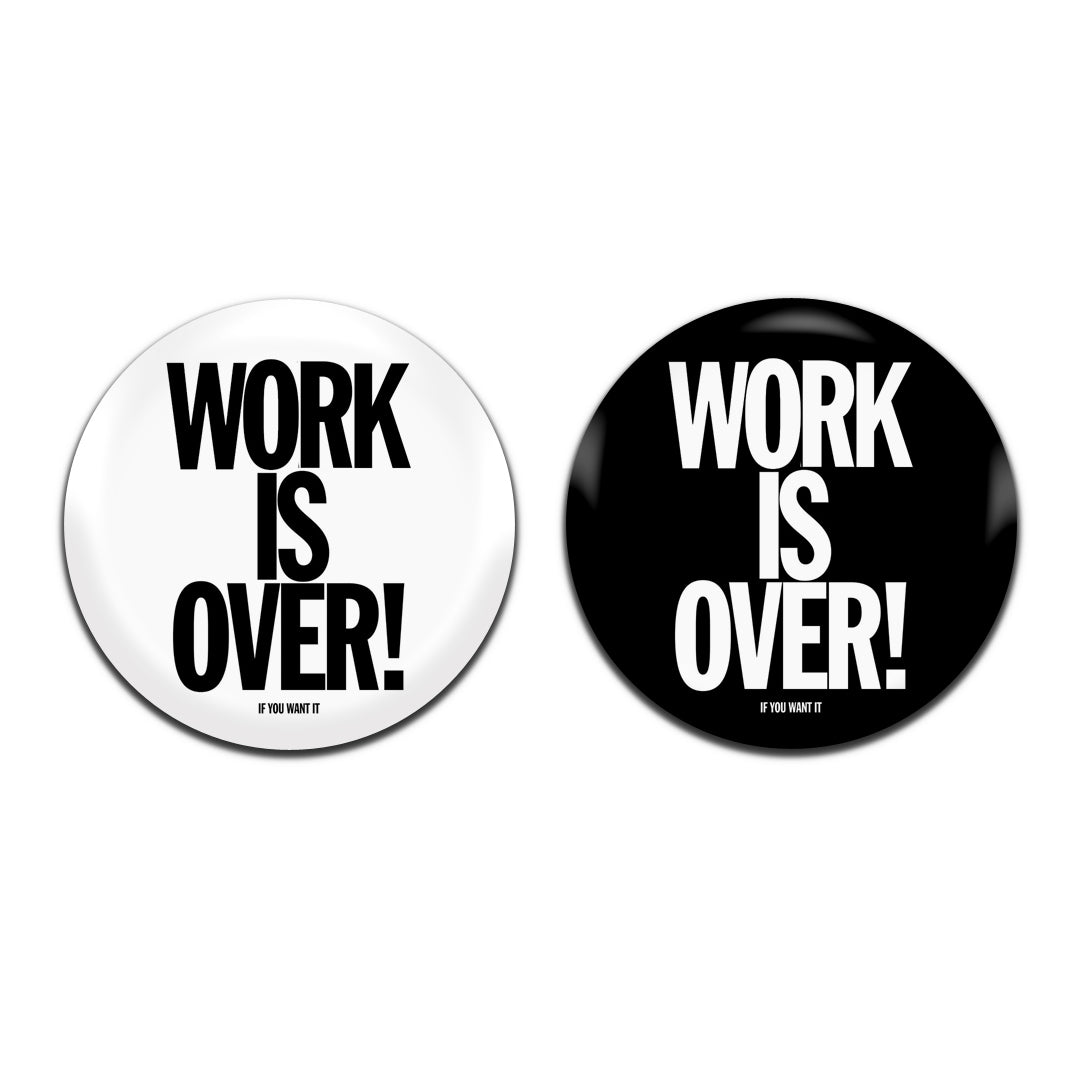 Work Is Over If You Want It John Lennon Yoko Ono Parody 25mm / 1 Inch D-Pin Button Badges (2x Set)