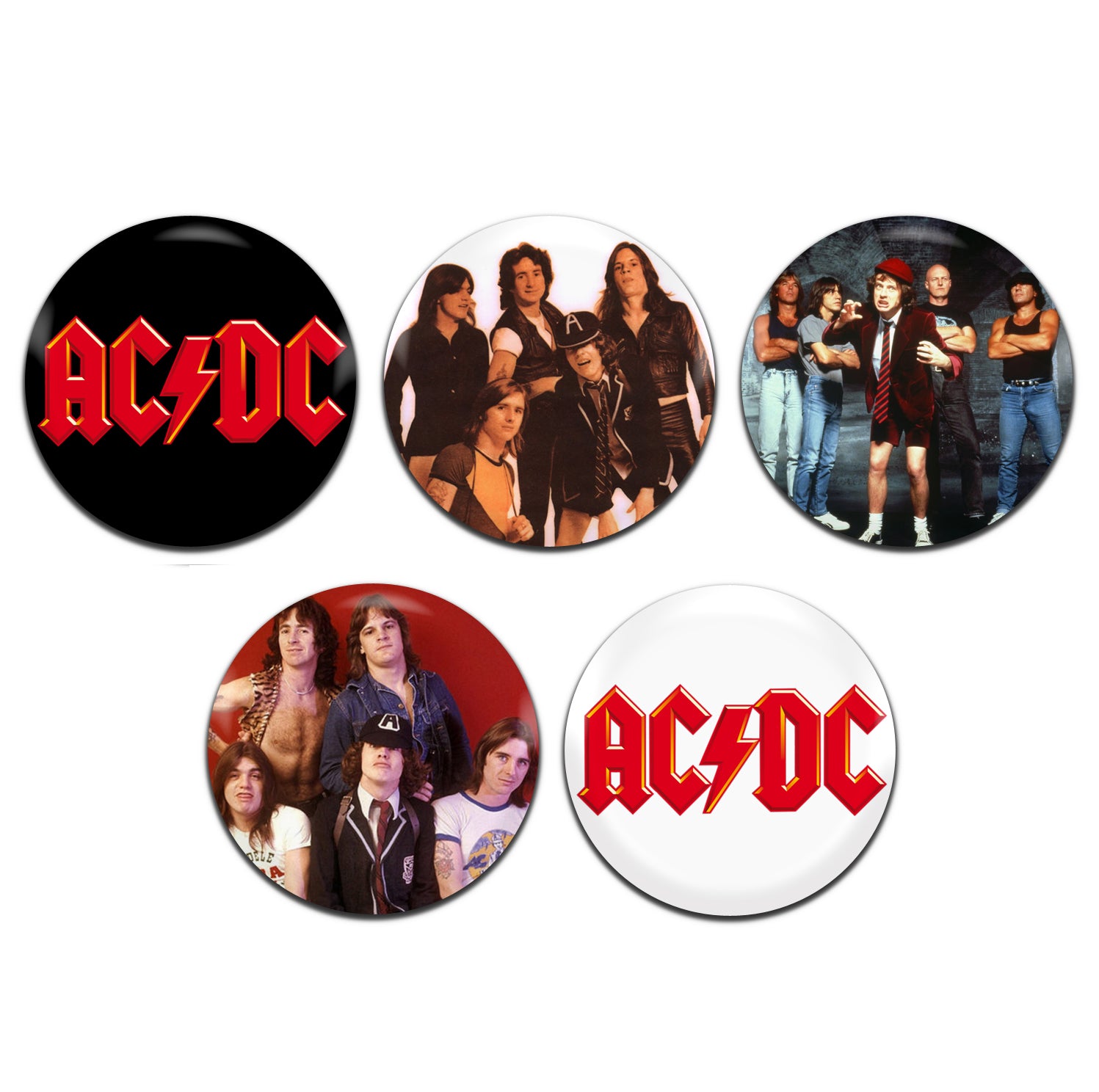 ACDC Heavy Rock Band Metal 70's 25mm / 1 Inch D-Pin Button Badges (5x Set)