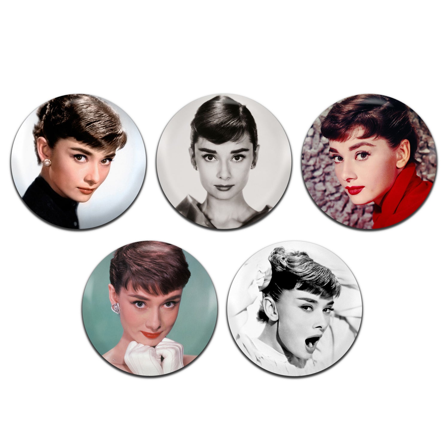 Audrey Hepburn Movie Film Actress 50's 60's 25mm / 1 Inch D-Pin Button Badges (5x Set)