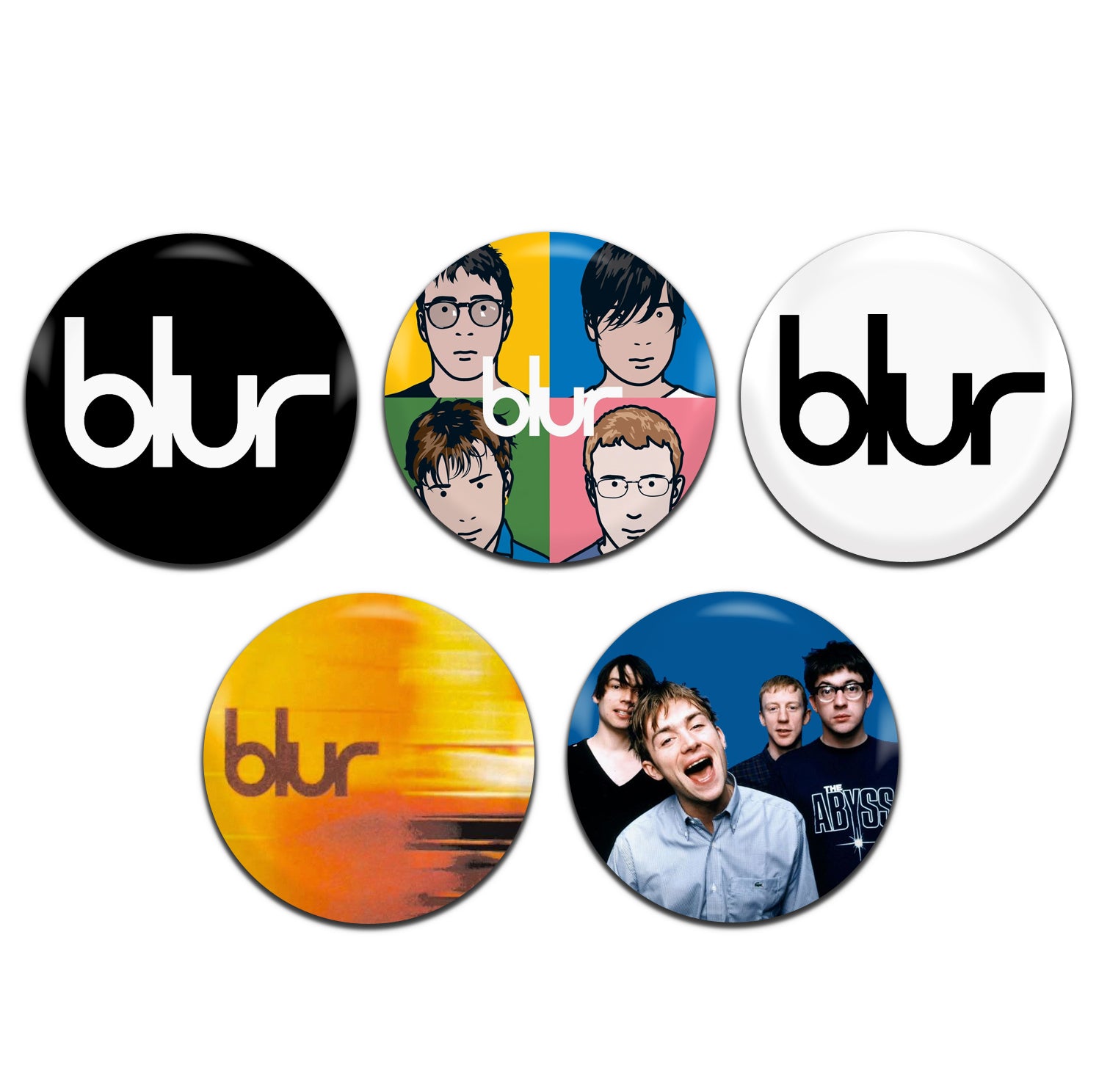 Blur Indie Rock Brit-Pop Band 90's 25mm / 1 Inch D-Pin Button Badges (5x Set)