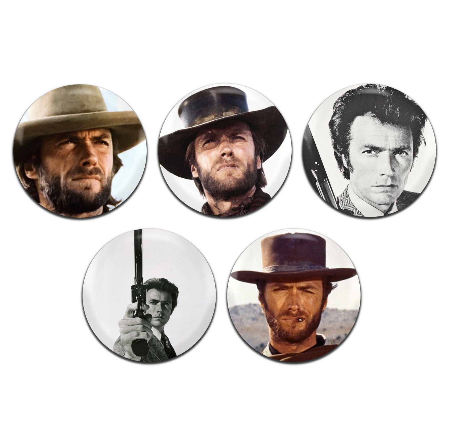 Clint Eastwood Classic Movie Actor 60's 70's 25mm / 1 Inch D-Pin Button Badges (5x Set)