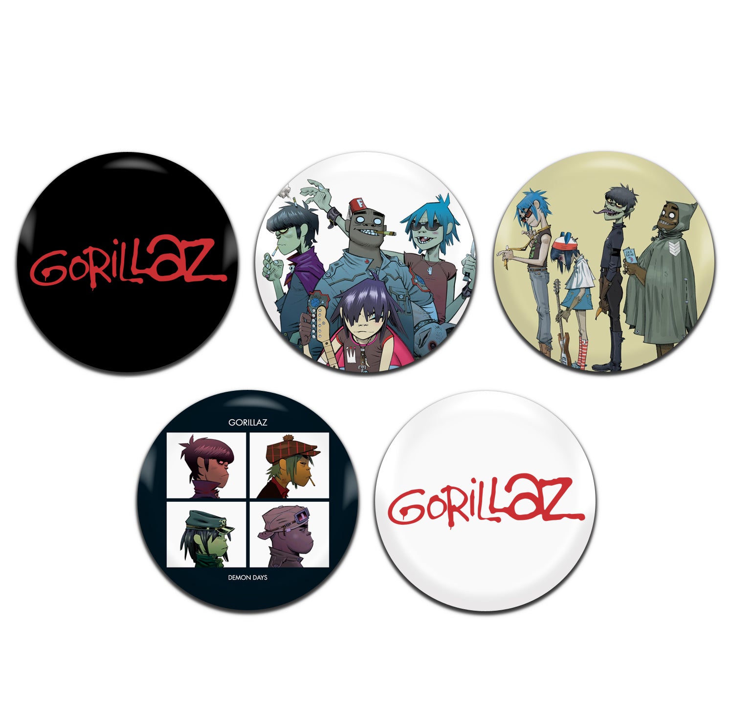 Gorillaz Indie Rock Pop Band 00's 25mm / 1 Inch D-Pin Button Badges (5x Set)