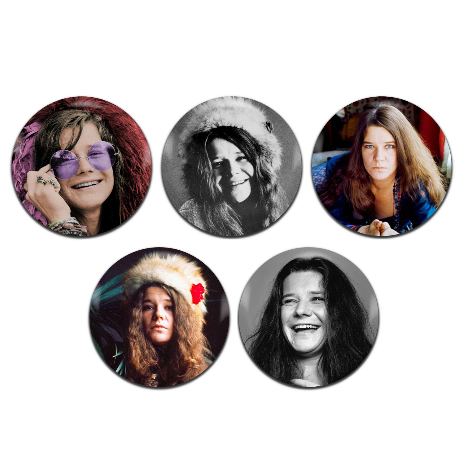 Janis Joplin Rock Psychedelic Singer 60's 25mm / 1 Inch D-Pin Button Badges (5x Set)