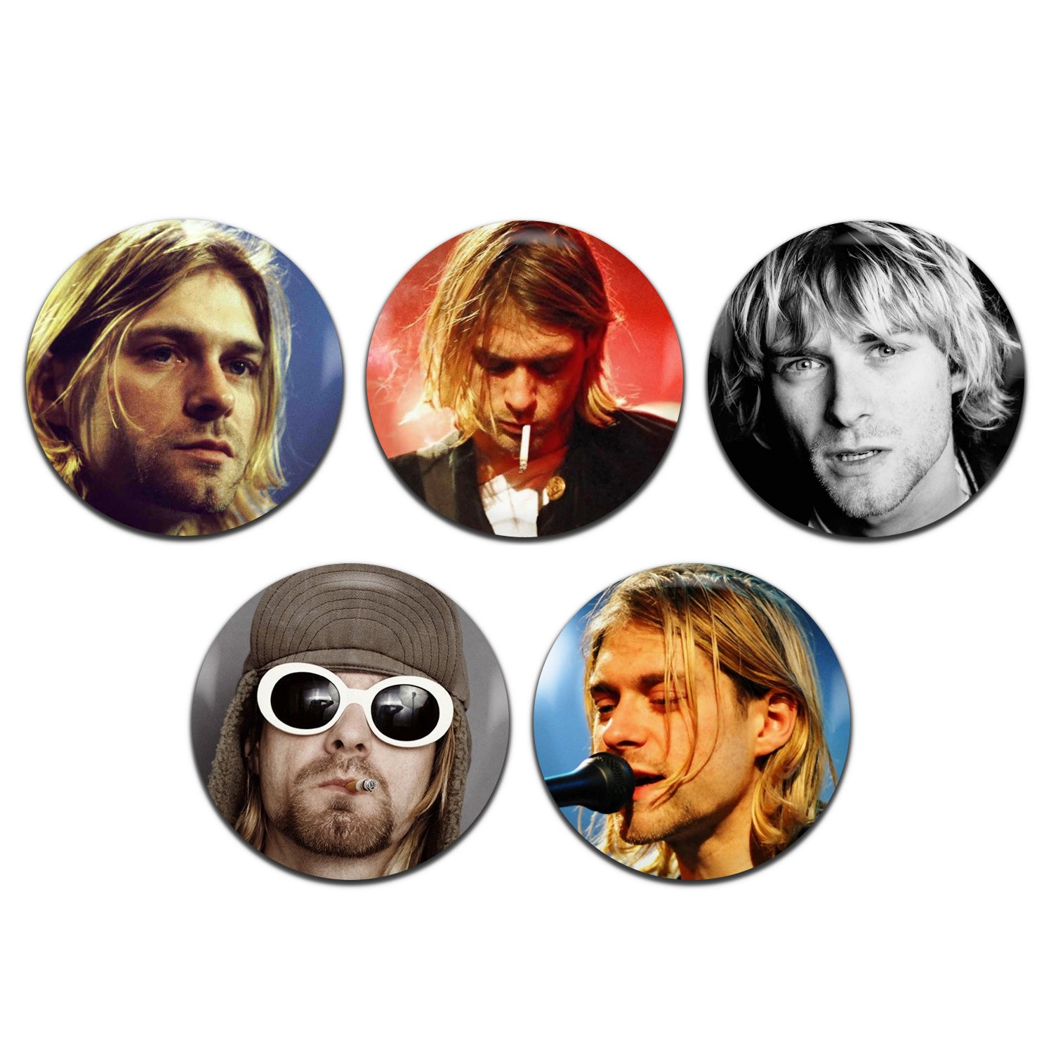 Kurt Cobain Grunge Rock 90's 25mm / 1 Inch D-Pin Button Badges (5x Set)