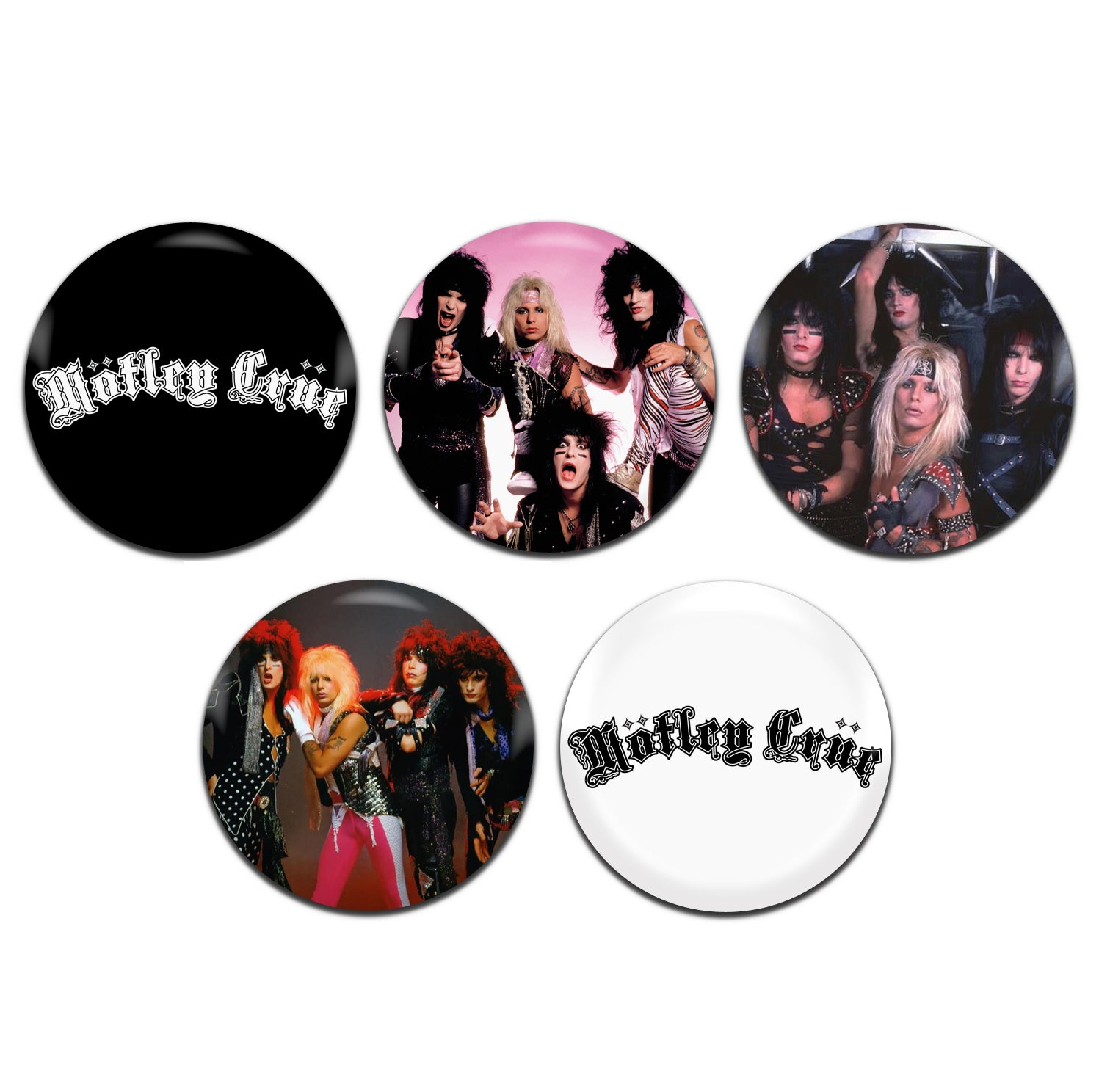 Motley Crue Heavy Metal Rock Band 80's 25mm / 1 Inch D-Pin Button Badges (5x Set)
