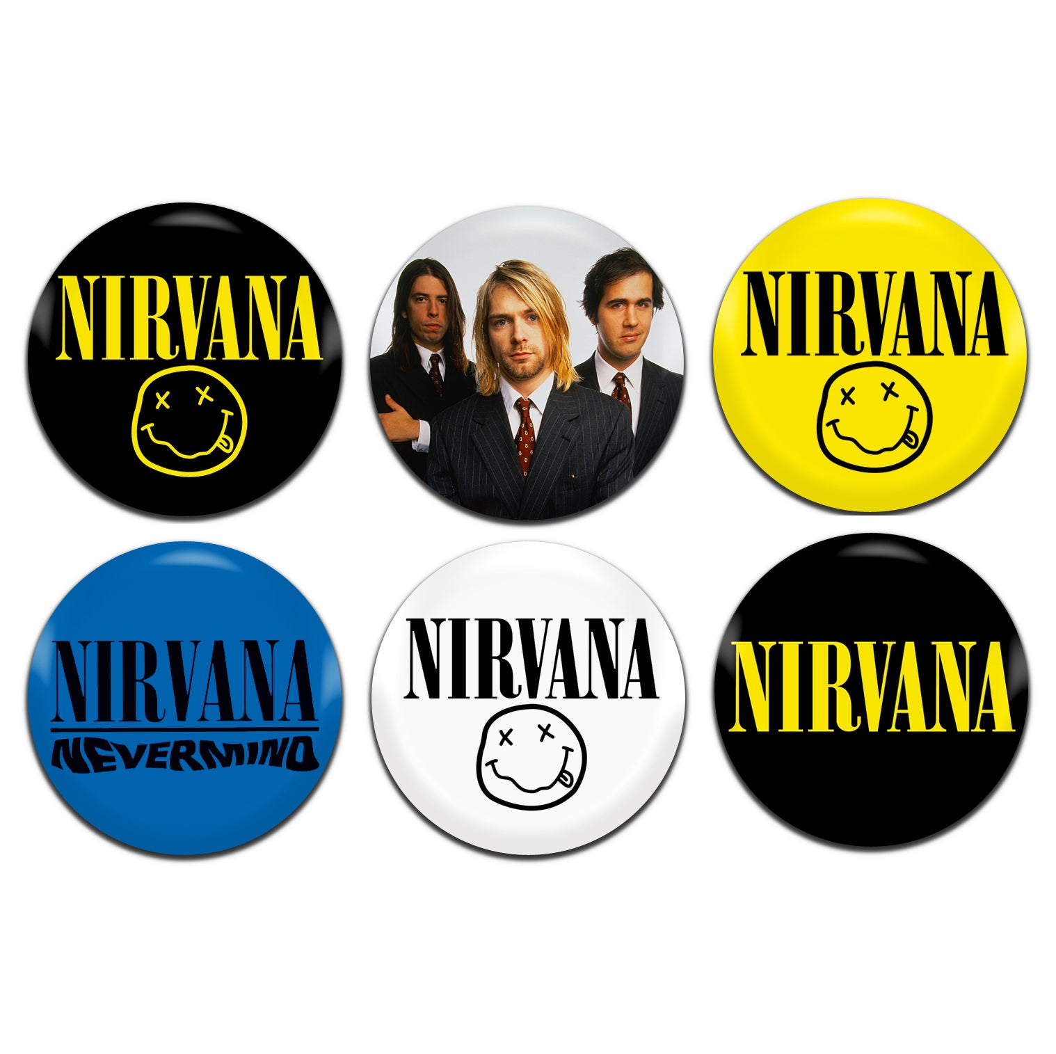Nirvana Alternative Rock Grunge 90's 25mm / 1 Inch D-Pin Button Badges (6x Set)