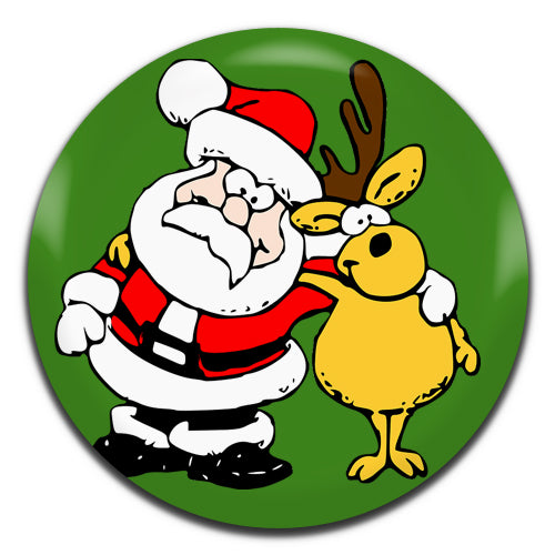 Christmas Santa & Reindeer 25mm / 1 Inch D-pin Button Badge
