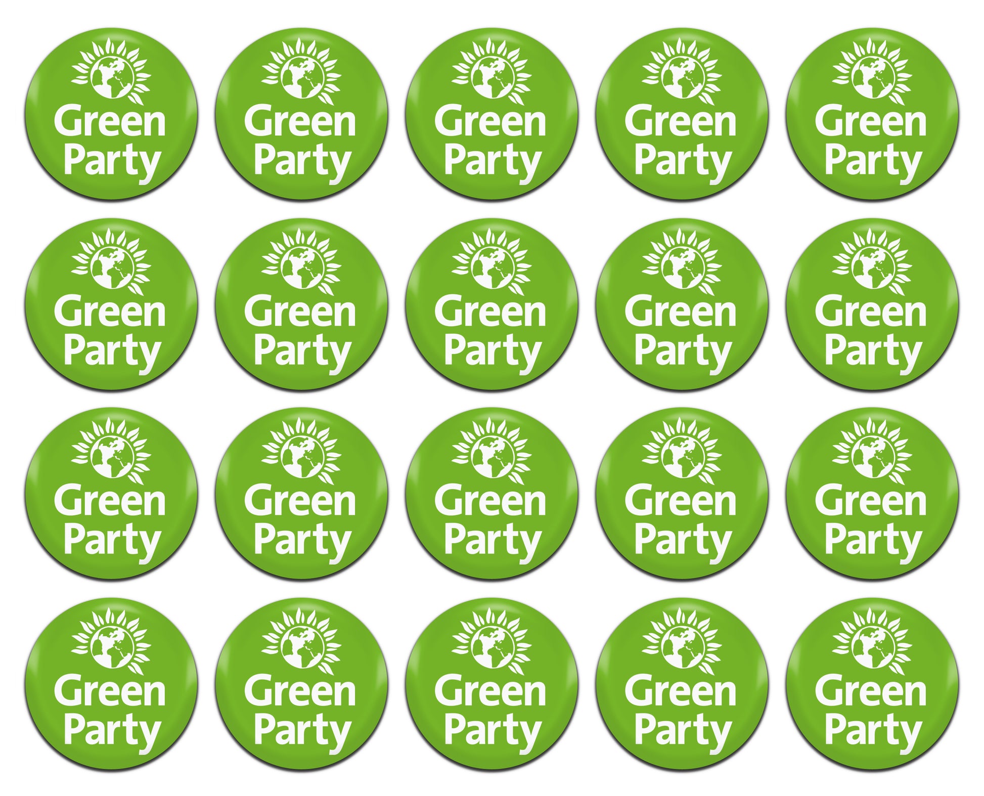 Green Party 25mm / 1 Inch D-Pin Button Badges (20x Set)