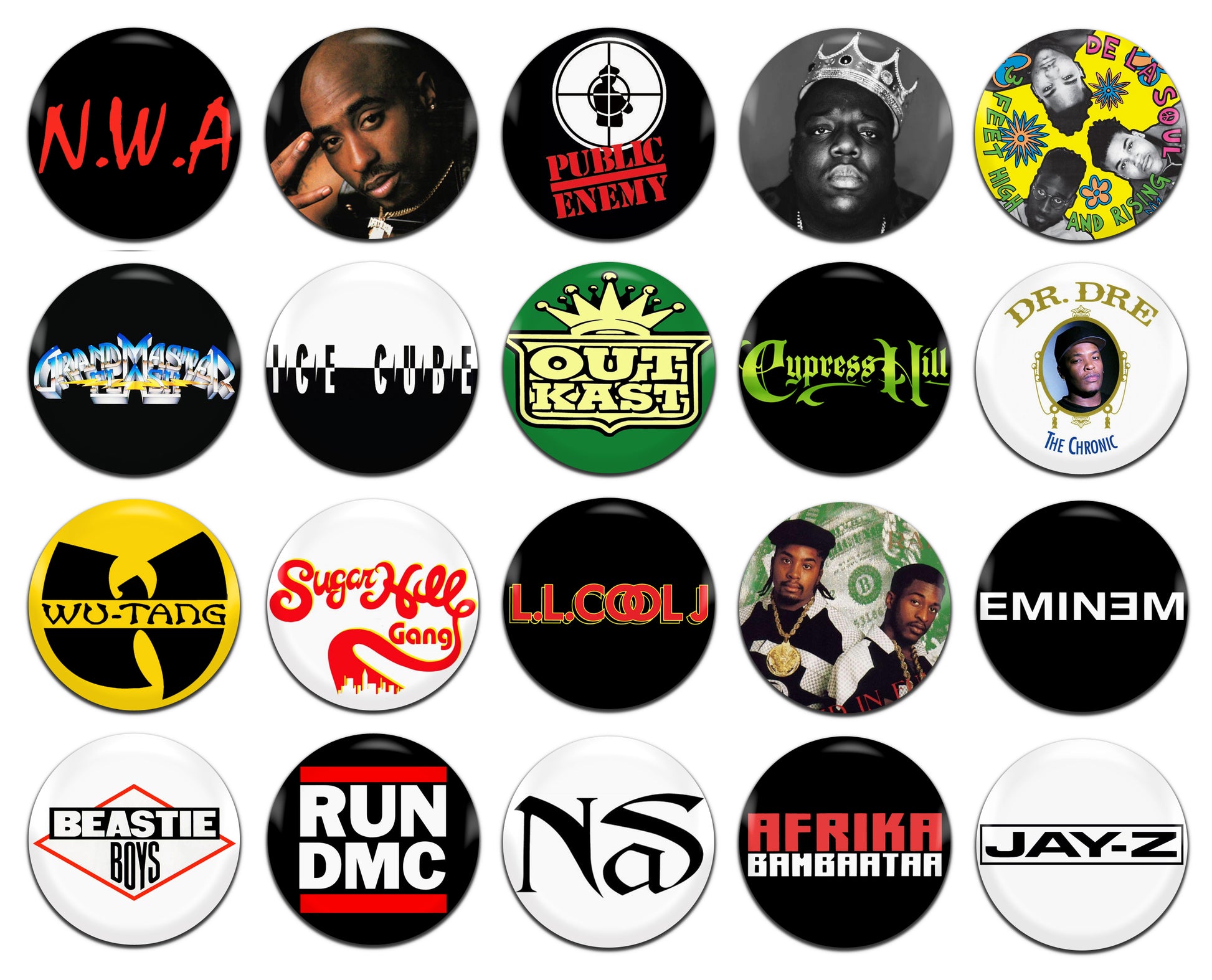 Hip Hop Rap Music Groups Artists 80's 90's 25mm / 1 Inch D-Pin Button Badges (20x Set)