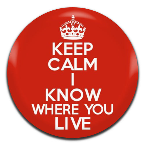 Keep Calm I Know Where You Live 25mm / 1 Inch D-pin Button Badge