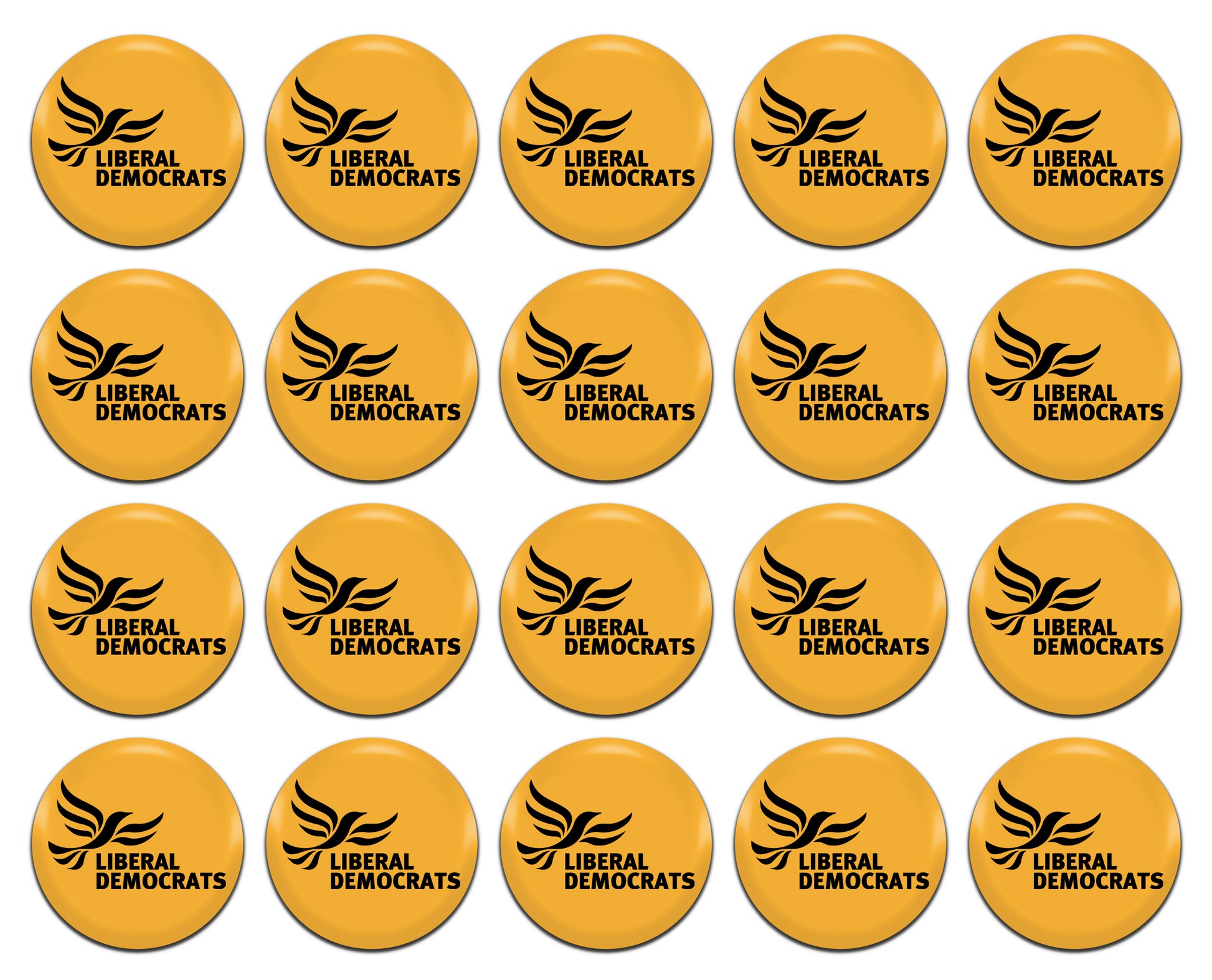 Liberal Democrats Lib Dems 25mm / 1 Inch D-Pin Button Badges (20x Set)